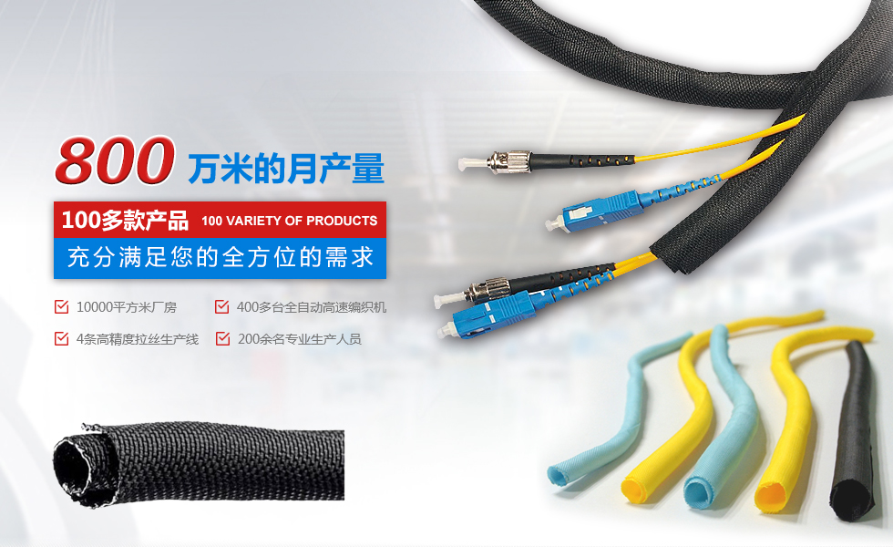自主設(shè)計(jì)、研發(fā)、規(guī)模化大型生產(chǎn)企業(yè) 擁有廠房10000平米,400多臺(tái)全自動(dòng)。高速編織機(jī)四條高精度紡絲生產(chǎn)線,員工200余人,月產(chǎn)量800萬(wàn)米,中國(guó)最大絕緣保護(hù)套管生產(chǎn)企業(yè)之一。